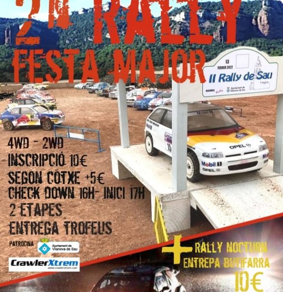 El dissabte dia 13 es va realitzar el 2on RALLY FESTA MAJOR al circuit de Vilanova de Sau. Guanyadors cat. 4WD: 1er Jordi Carbó 2on Robert Farré 3er “Bere” Guanyadors 2RWD: 1er “Chicho” 2on Robert Farré 3er Josep Carbó Guanyadors INFANTIL: 1er Blai Calvo 2on Tian 3er Martí